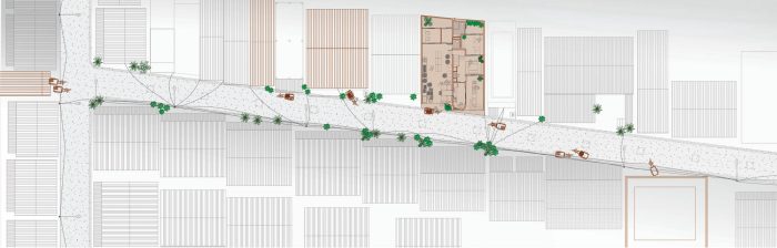 外墙仍然保持着这个社区二楼前廊的特征。在过去,阳台是连接每个家庭的区域。客厅被放置在阳台旁边,让空气和自然光容易进入。