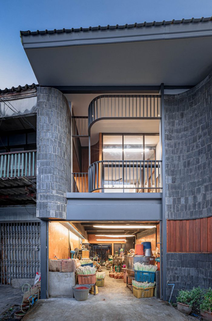 Due to the structure of the original building and some spaces have decayed by both termites and long use. Therefore, we decided to keep the old materials to be used in the construction of the new building as much as possible. The architect collects the details of the area and the old building, also planning the construction process as well. During the construction, there must be an area to support the curry paste factory that cannot stop the production. Thus, the design is required by planning the construction for 2 phases, the inside area was separated into 2 parts as a solving of construction problems. which is a challenging constraint in both work and construction for the technician team.