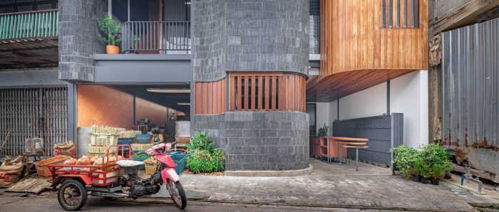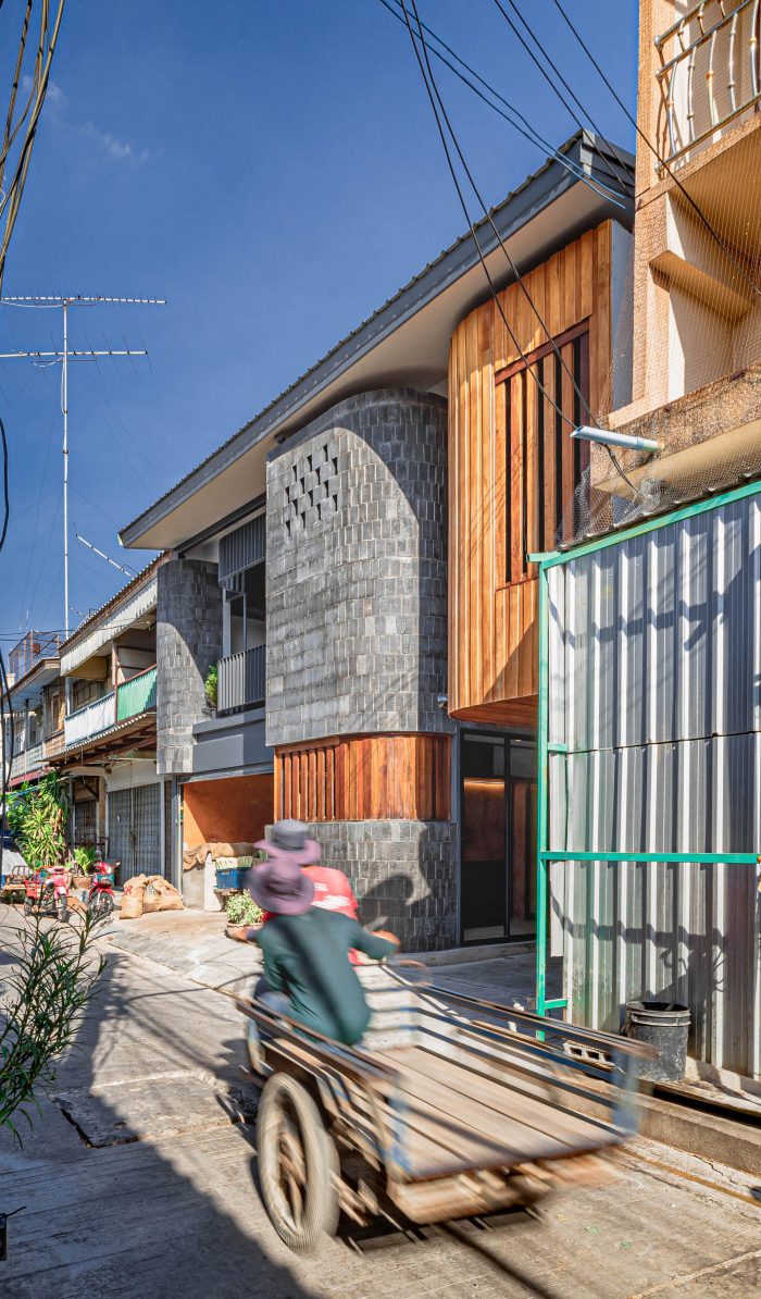 Baan priggang (Curry Paste Home) is located in the center of Saraburi province. The area is surrounded by interesting household businesses, for instance, curry paste factory, and a local market. We will be able to experience the production of curry paste with clear shape, taste, smell, and sound. The original area was a two and a half storey wooden house with a building on the side. The owner would like to renovate the old area which was the curry paste factory, a household business that has been used for many generations. The building conditions are deteriorated and ineffective in use to be the area that is both residential and able to support the business in the future effectively.