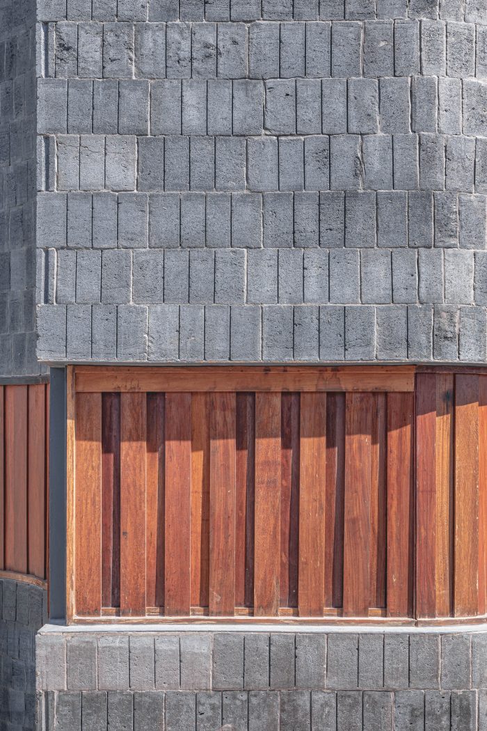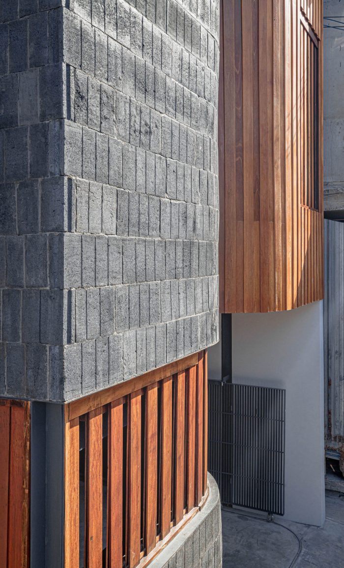 建筑的外部有一个突出的外观,其线条给人以流畅的感觉。但同时,通过选择使用简单的材料作为建筑的框架,它也让人感觉到与周围环境的友好,这些材料都是在Saraburi生产的。通过各种材料的组合,与这条街道融为一体,保留了建筑的形状、味道、气味和声音。
