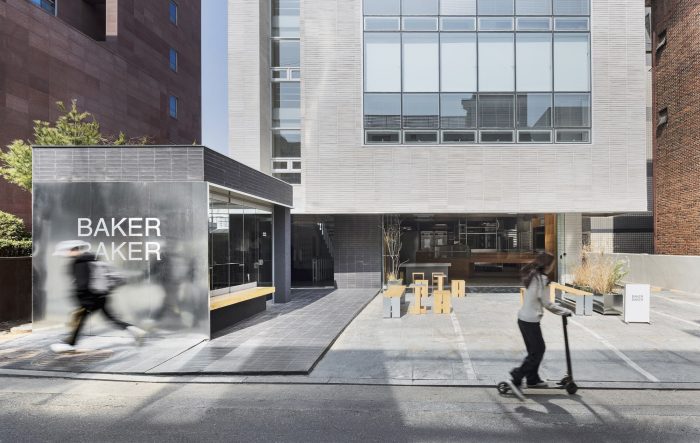 Baker Baker is a space that gathers, communicates, and connects people gathered with a common interest in bread. The project was inspired by the square, encouraged everyone to participate, even in a passive way, and planned to be a vibrant space by lengthening their stay.