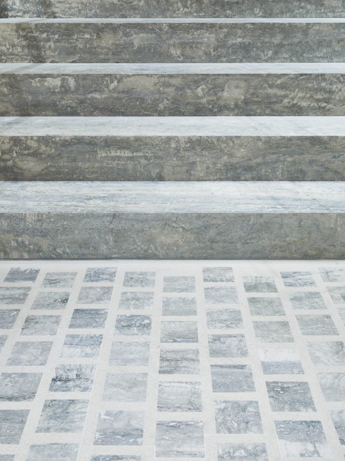 这家店的设计是Casper Mueller Kneer对该品牌的全球建筑形象进行重新创作的一部分。该店像一栋大型别墅一样被安排在三层,面积超过560平方米,其中底层是最开放和公共的,是通往城市的门厅,铺设了石灰华鹅卵石地板和银色石灰华墙衬。 一个大型的中央楼梯强调了整个空间的体积,在最高点达到了9.9米。上到一楼,空间的物质性改变了,变成了一个更私密、更亲密、更像小屋的环境,其特点是欧洲橡木镶板和手工编织的地毯。
