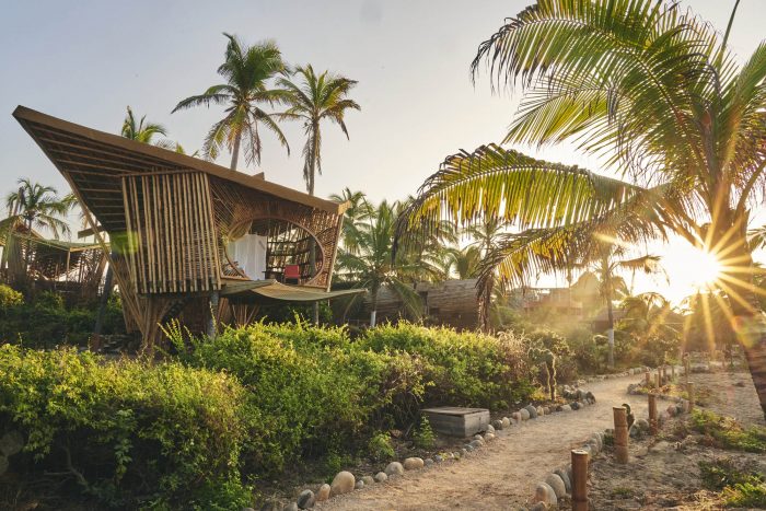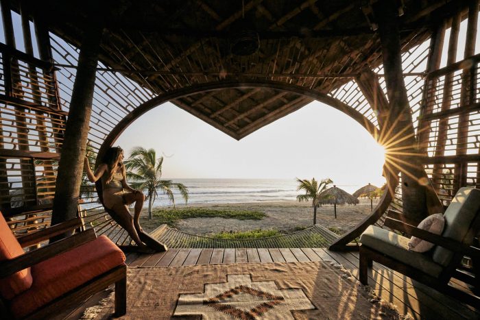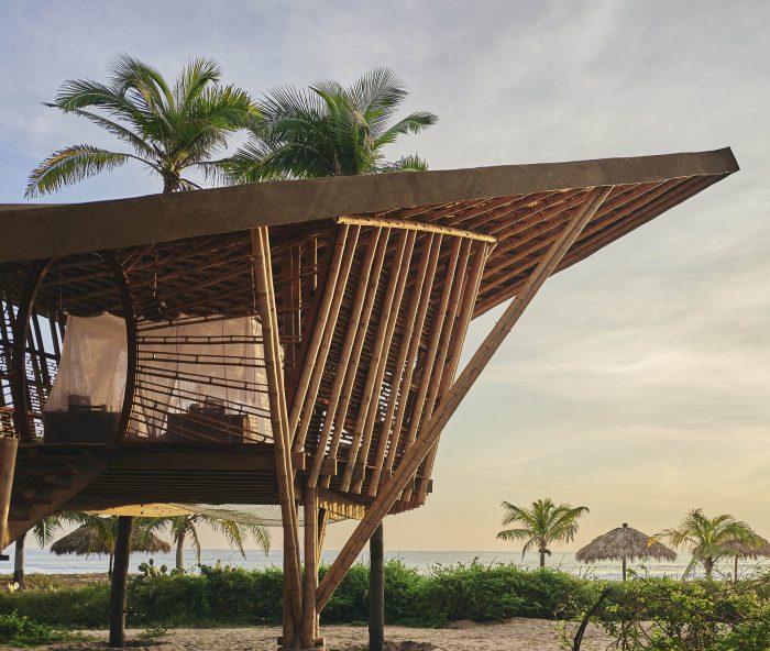 Atelier Nomadic, the design studio at Nomadic Resorts, has designed a series of bamboo treehouses at Playa Viva, an environmentally conscious resort dedicated to sustainability and regenerative practices. The positive impact is integral to the Playa Viva experience, which is run entirely off-grid and generates 100% of its energy from solar power. The resort works extensively with the local community to support health and education and works year-round to restore and revitalize the surrounding land. The resort is the founding member of the Regenerative Travel organization and founded and supports the La Tortuga Viva turtle sanctuary.