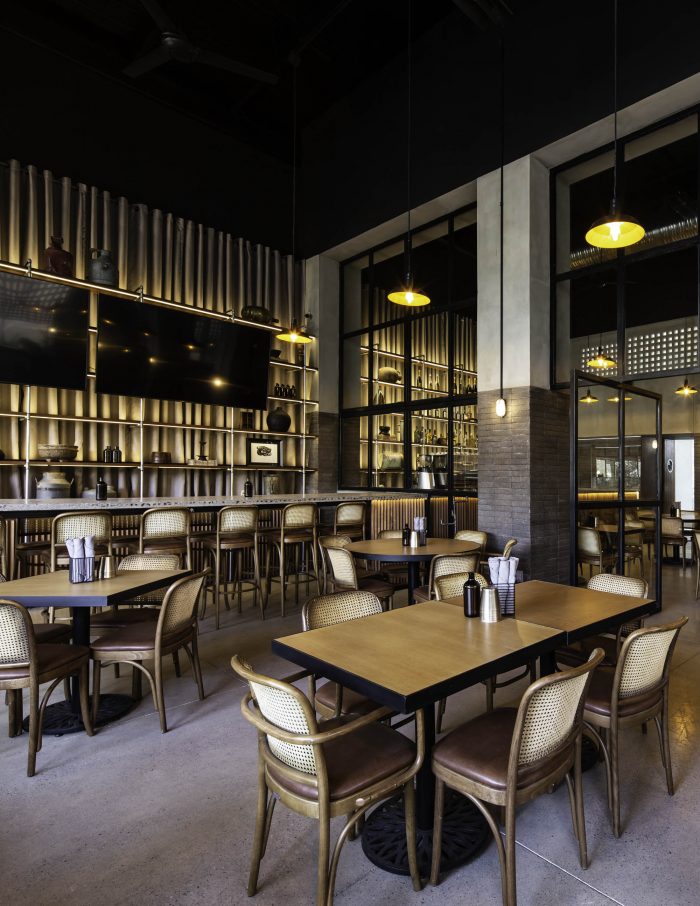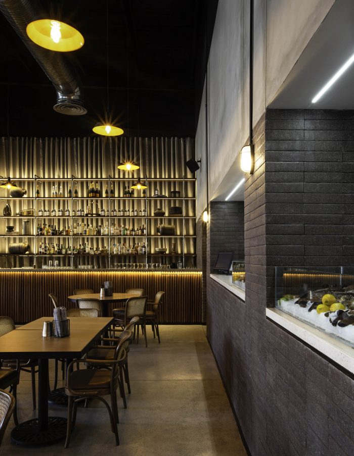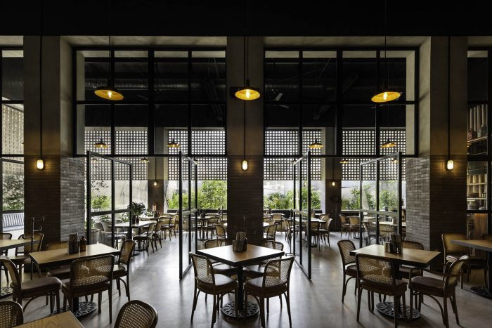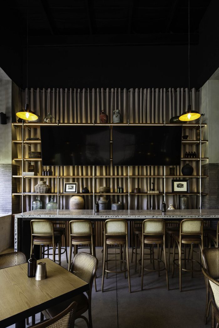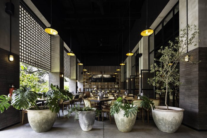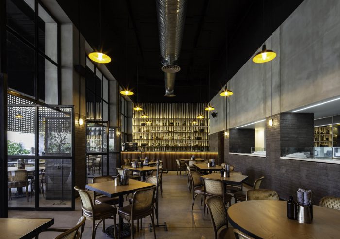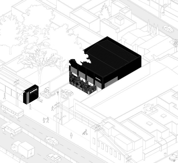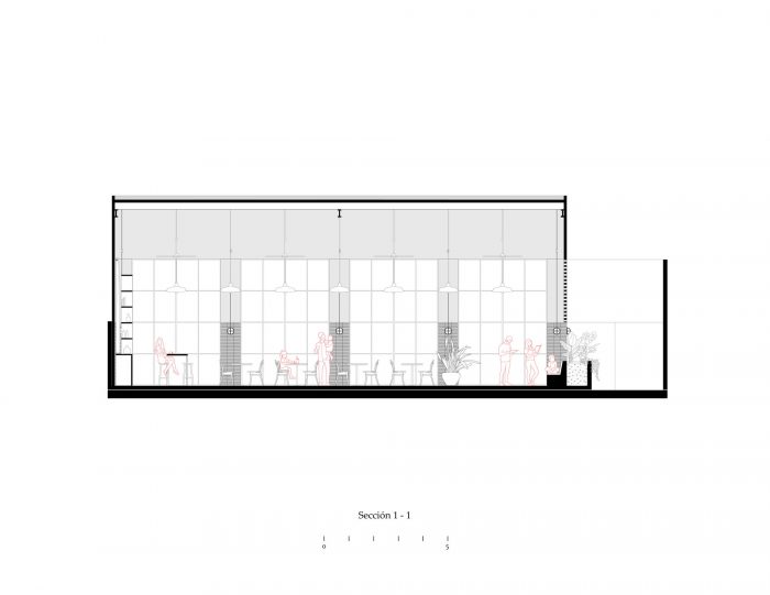 The approach initiated with a simple idea: expand the existing warehouse by duplicating its interior capacity for diners, without altering the original modulation or structure. Based on these premises, a sequence of bays was opened between the expansion and the pre-existing in order to link them, as well as another symmetrical sequence to integrate both areas with an exterior green buffer operating as an intermediary between the busy avenue and the restaurant.