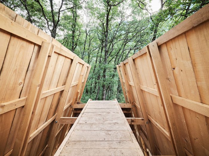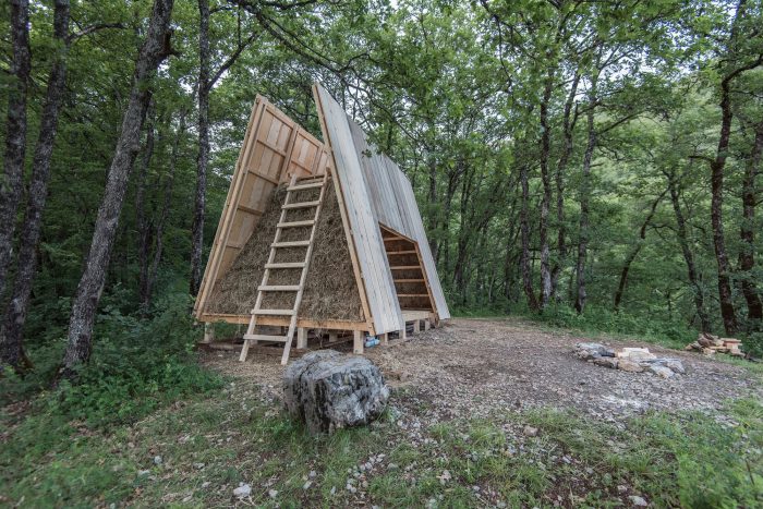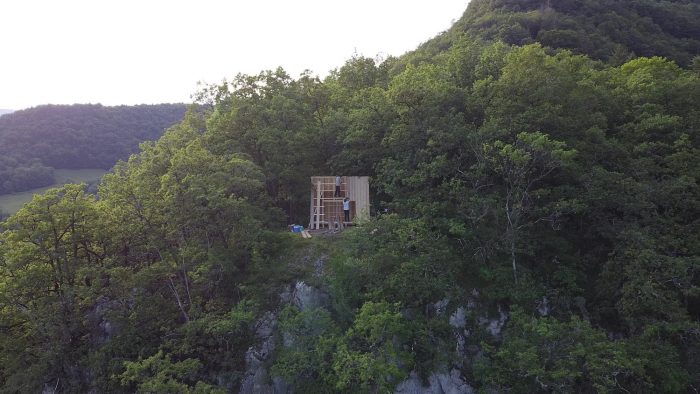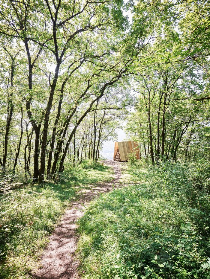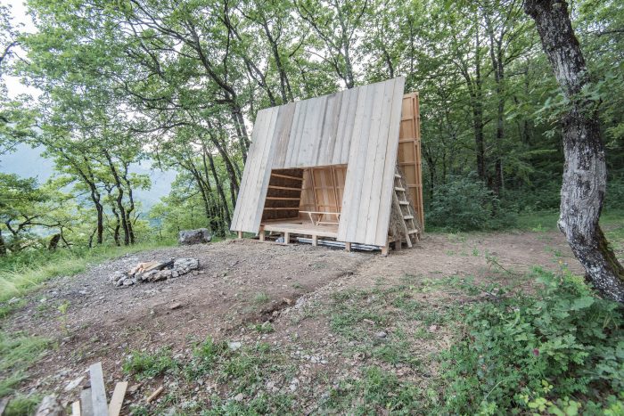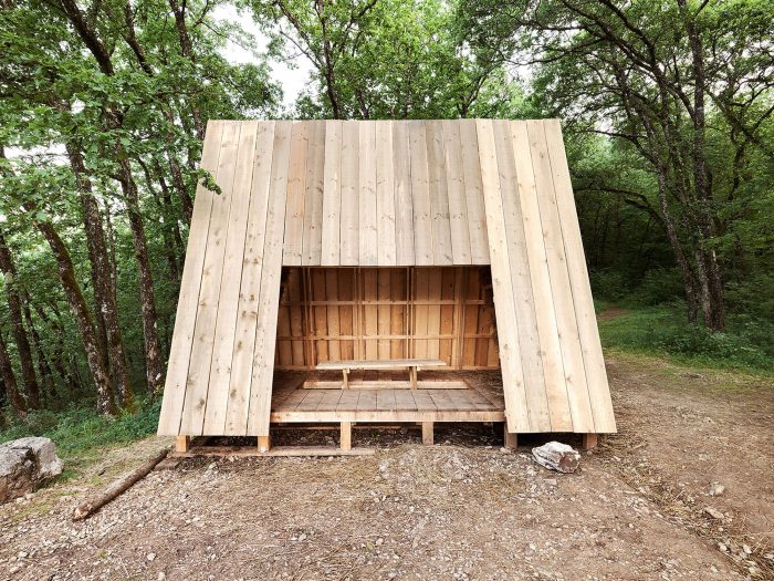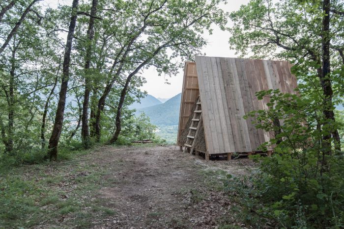The project is part of Festival des Cabanes 2021 in the area of Faverges-Seythenex, near Annecy lake. The site is located on a cliff overlooking the surrounding villages. Only accessible by foot, it was used as a gathering point by locals and hikers.