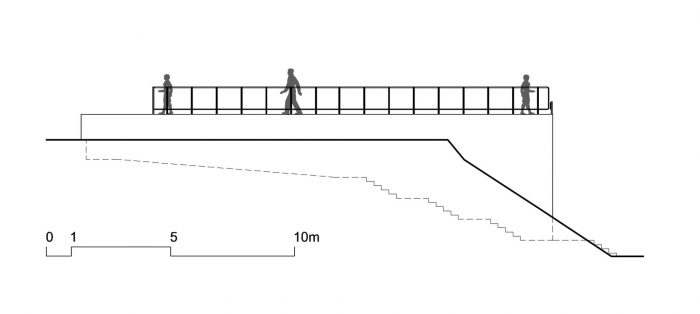 画廊是该项目中唯一的 "半埋式 "结构。这种策略允许从景观中获得开放的视野,并将屋顶用作分层的观景台,这也是游泳池平台的延伸。
