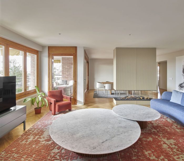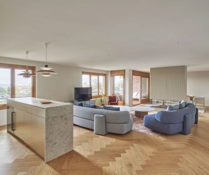 Largely untouched since its construction in the 1970s, this Barcelona penthouse underwent a complete redistribution to suit contemporary open-plan living. The design of the project responds to a modernized approach to a classic building in general and the will to preserve its inherited elegance, all in line with the preferences of the clients. The superfluous partitions are eliminated, connecting all the day areas in a large fluid space, thus preventing corridors.