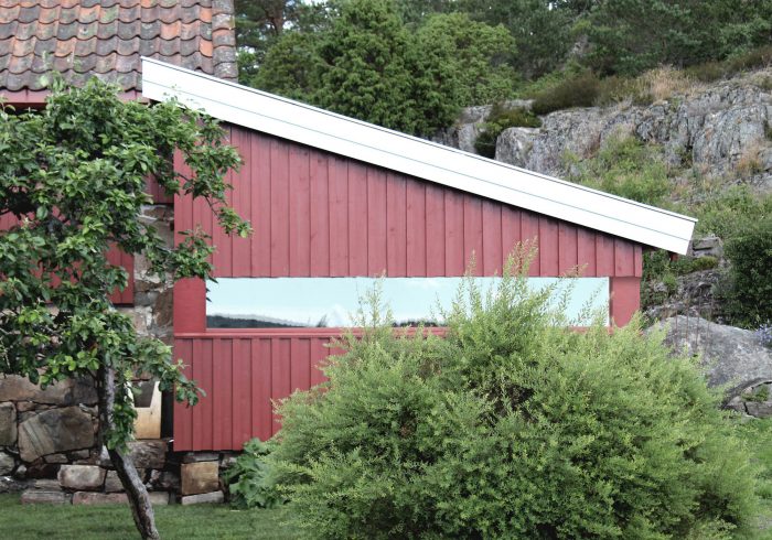 Transformation of the 19th-century small barn on the coast of Norway for a private client into domestic use. The barn is constructed with fieldstones, notched logs (laft), and a timber frame. The proposal adds bathrooms, kitchen, living spaces, and two bedrooms into an old agricultural structure.
