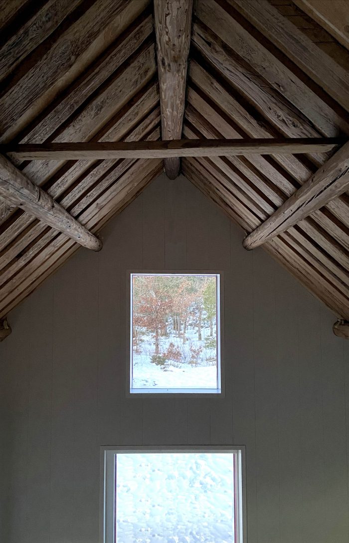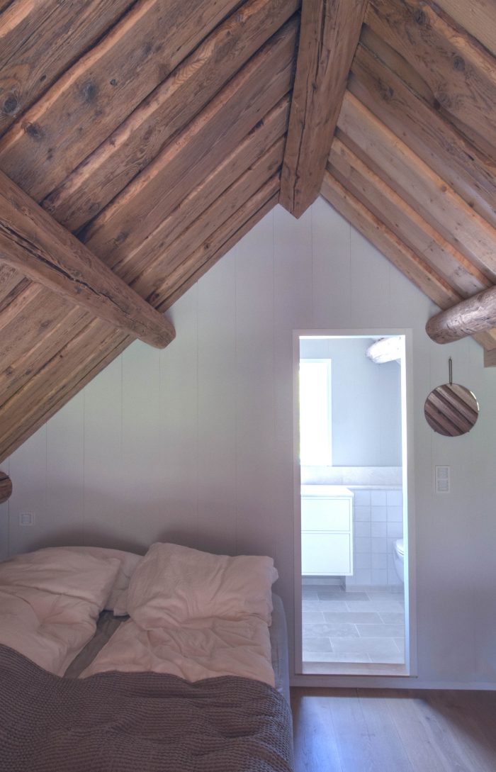 The main driver of the transformation is to compress new domestic services to retain the original features of the building. The existing openings in the building were originally used to bring in, animals, hay, and farming equipment. They now bring in light and are kept as simple picture windows with recessed frames.