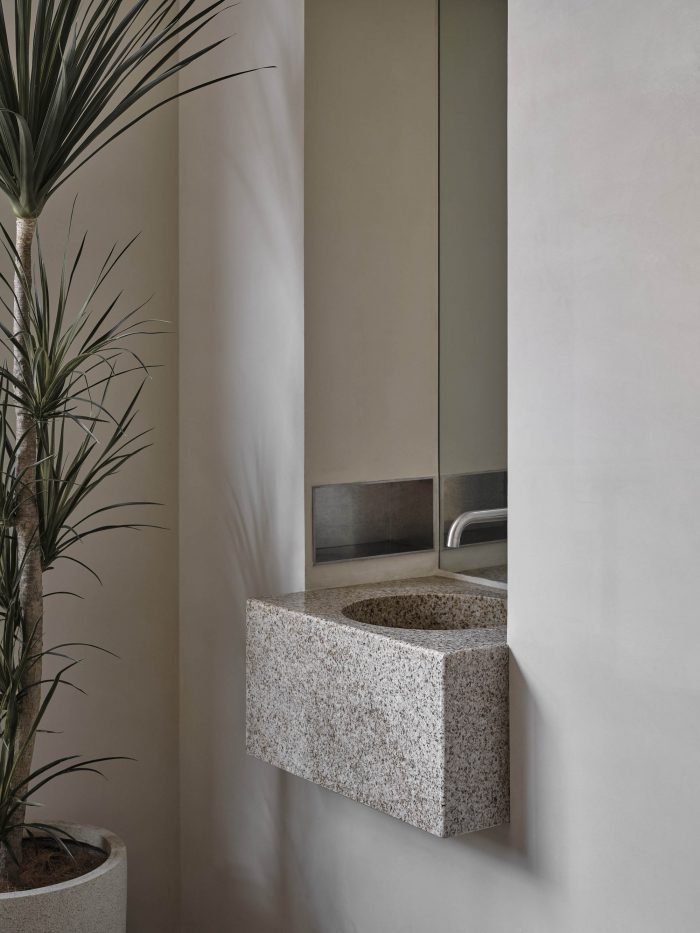 Carefully considering the sense of touch, the experience of the space becomes an interplay of textures and temperatures in combination with contrasting polished and raw surfaces. The differing textures play an important role in highlighting distinctive features, as the contrast between rough and solid or soft and hard becomes even more noticeable than if one of them were void.