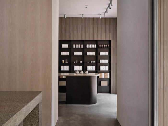 Entering the new BASAO Tea Lounge in Xiamen, China, one senses an instant change in pace, when the bustling cityscape is replaced by a calming acoustic. As natural light filters through from the outside and highlight the subtle colors and rich textures of the carefully selected materials, the space feels warm and welcoming. Just like the many scents of tea are vibrant and natural, so are the materials that make up the store, and combined with subtle storytelling as well as a curated architectural framing, the space feels rooted in its local surroundings.