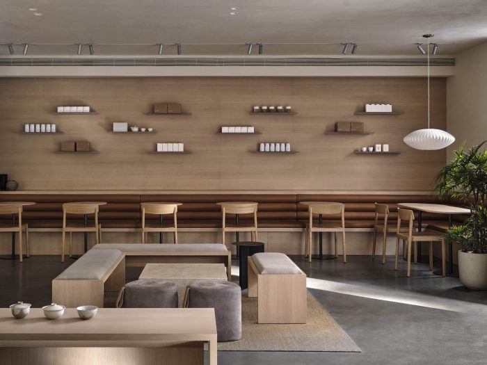 Curated shelves and podiums display beautiful cups and canisters alongside all kinds of tea, while handmade objects are displayed with a note about the making and use – illuminated to bring out texture and color, inviting visitors to touch and explore. When interpreting key elements of tea culture and local features into contemporary variations, the setting is free to take unlimited forms while remaining relevant and recognizable.