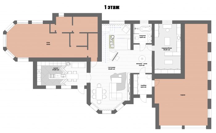 The home is located in picturesque Bashkortostan, which is directly reflected in the interior design. Natural motifs of the "second Switzerland" can be found in every corner of the room. The design area is 260 square meters.