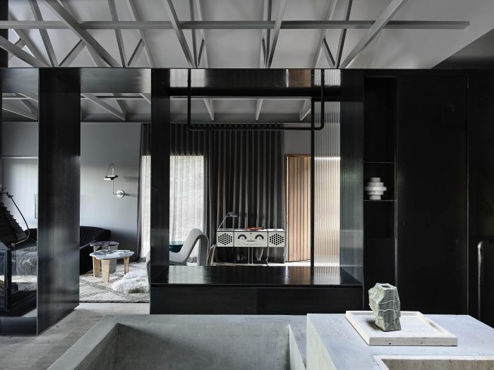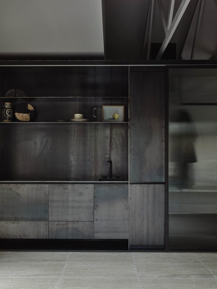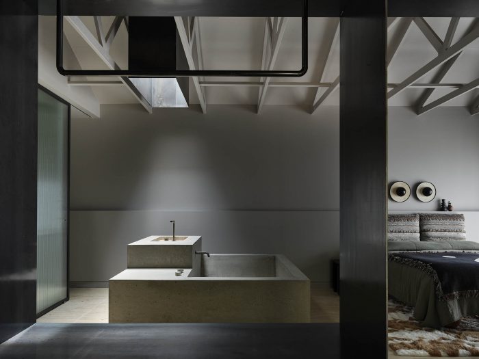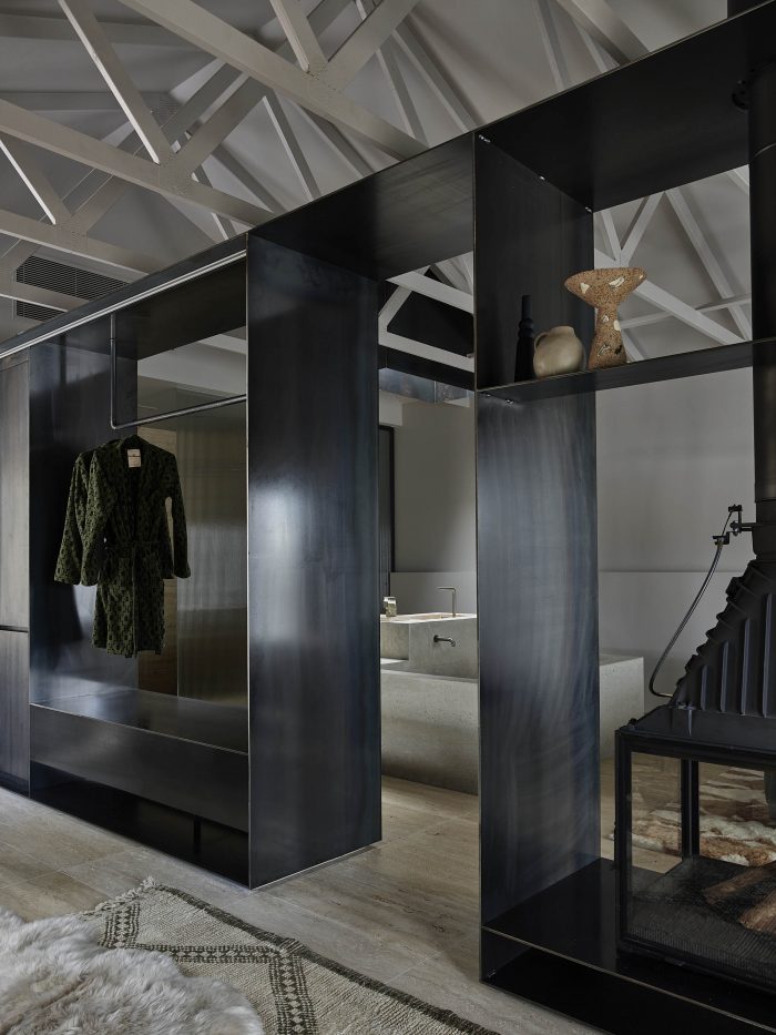 The interior concept is intended to invoke a sense of relaxation, grounded in calming textures and tones. The main central steel spine strongly defines the identity of the space, with its refined industrial detailing. In response to the project brief, the interiors provide a private and intimate retreat away from the urban chaos.