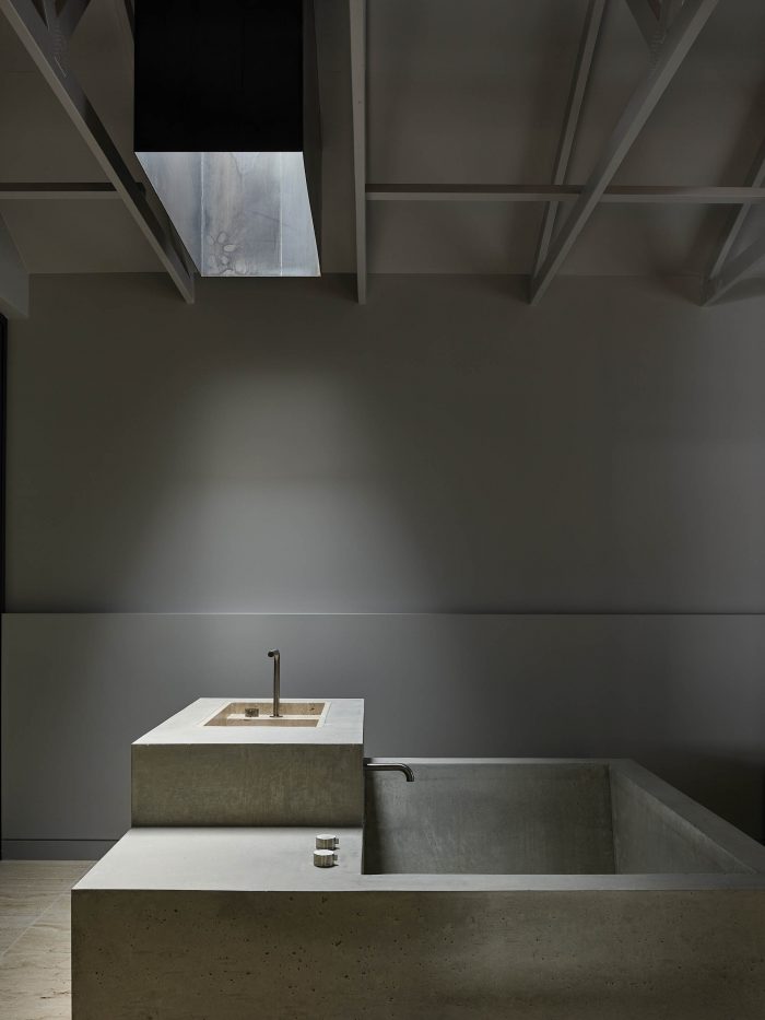 巴萨诺是独特的,充满了意外的体验。与柔和的乡村外部建筑形成直接对比的是,室内巧妙地平衡了大胆粗暴的想法和精致的细节设计。特别是,特色的混凝土浴缸和面盆自豪地位于空间的中心,并从上方发出戏剧性的照明。混凝土的纹理与洞石地板相得益彰,既坚固又持久。