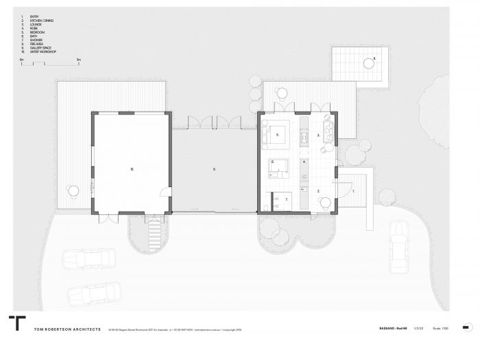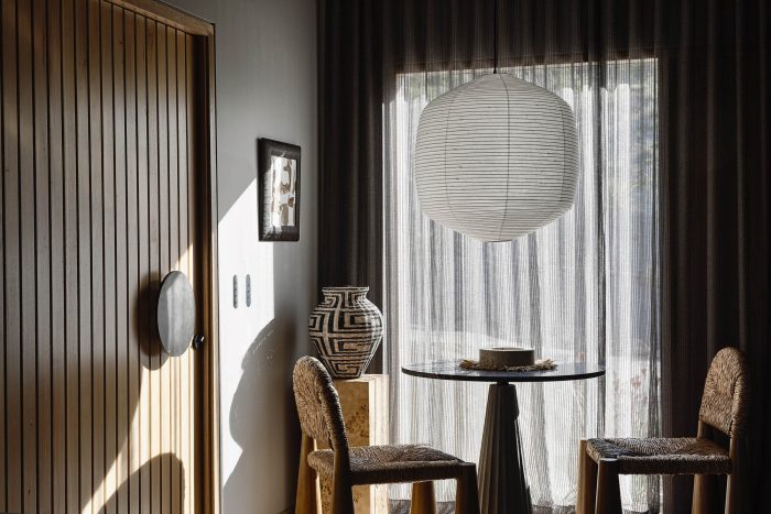 该项目涉及对现有的两间小屋的重塑,以创建一个单一的豪华私人套房和艺术家工作室。套房本身已被大胆地雕刻成两半。进门的一侧包含一个厨房和早餐角,以及一个舒适的休息室。剩下的一边则更加私密,设有一间卧室和引人注目的套房。