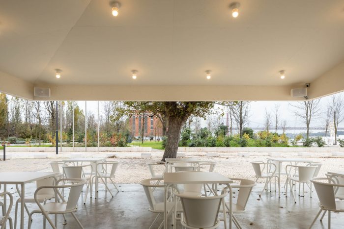 The pavilion’s geometry and the way it was built create an environment that is open to the river as well as an intimate atmosphere under the roof.