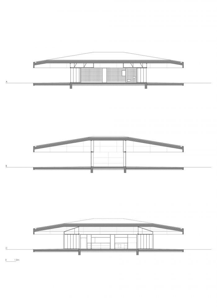 亭子的几何形状和建造方式创造了一个面向河流的开放环境以及屋顶下的亲密氛围。