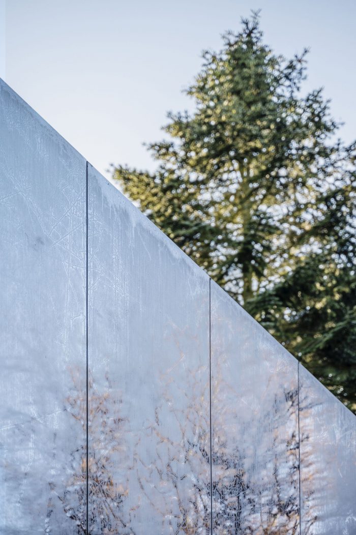孩子们的卧室位于屋顶,这个第一层是由一个镜面盒子形成的,由于森林的反射而消失,使别墅保持其光滑的水平平房般的外观。悬臂屋顶下的落地推拉窗强调了这种拉长,混凝土地板从内部流向外部的露台。花园、混凝土和玻璃之间的视觉和空间互动以及镜面体量的反射使建筑具有永恒的外观,并形成对原始设计力量的颂扬。