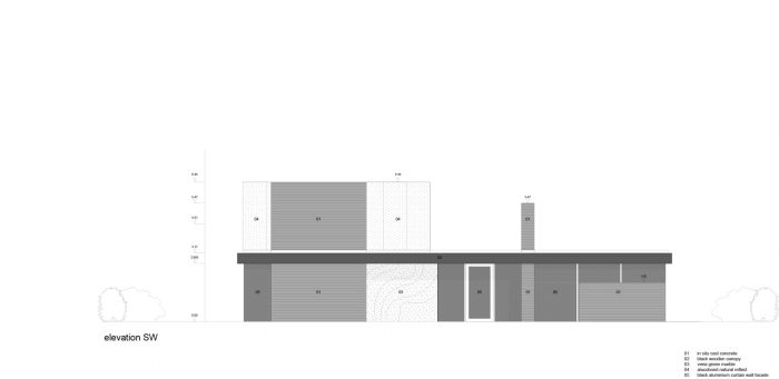 At first glance, randomly positioned concrete walls to define the interior-exterior spaces and functions. Their variation in height and orientation allows them to fulfill serval functions: bearing, privacy, chimney, sunscreen, paravent, storage, garden wall, etc. The ground floor is designed to be future-proof, incorporating all necessary functions in a loft-like space, visually separated by the positioning of the concrete walls. The most noise-sensitive spaces are situated on the edges of the building but with a non-obstructed daily flow.