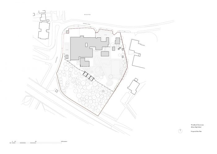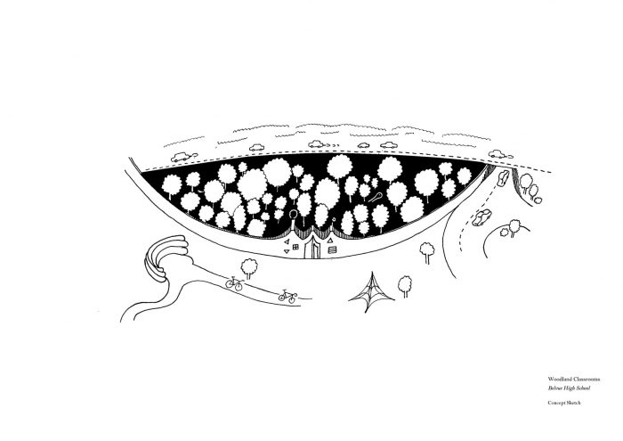 Belvue学校是一所为有中度至重度学习困难和一系列其他额外需求的男孩和女孩提供的中学。学校的场地毗邻一片未被充分利用的林地,学校将其作为教育性自然保护区进行管理。2014年,学校已经筹集了足够的资金来安装两个集装箱,作为林地的存储和支持空间,但他们找到了Studio Weave,询问是否有可能用类似的预算来实现一些更灵活、更大的课外空间。