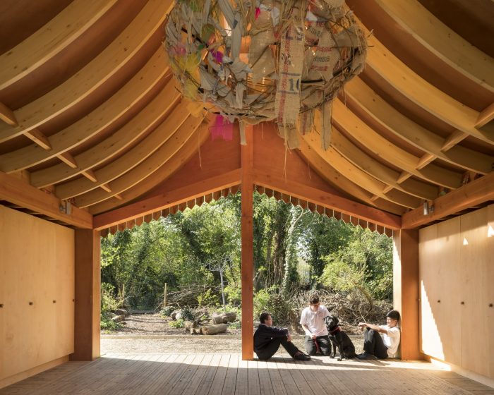 Belvue School is a secondary school for boys and girls with moderate to severe learning difficulties and a range of other additional needs. The school site sits adjacent to an under-utilized woodland which the school is managing as an educational nature reserve. In 2014 the school had already raised enough money to install two shipping containers to act as storage and support spaces for the woodland but approached Studio Weave to enquire whether it would be possible to achieve some more flexible, larger extracurricular spaces with a similar budget.