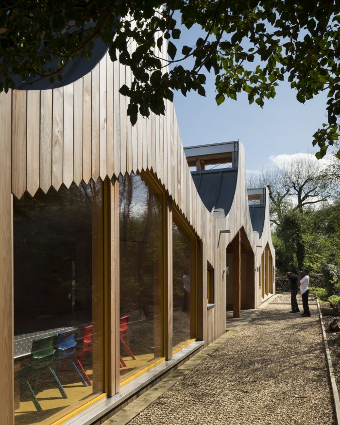 Studio Weave worked with the school to develop the design of two new woodland rooms that sit separately from the main school building and provide 150sqm of unique facilities, with a more domestic quality and intimate scale. Our approach to this project was about more than just designing a new building for the school, it was about creating a narrative for the woodland that would open up imaginative ways of engaging with this newly acquired natural asset.