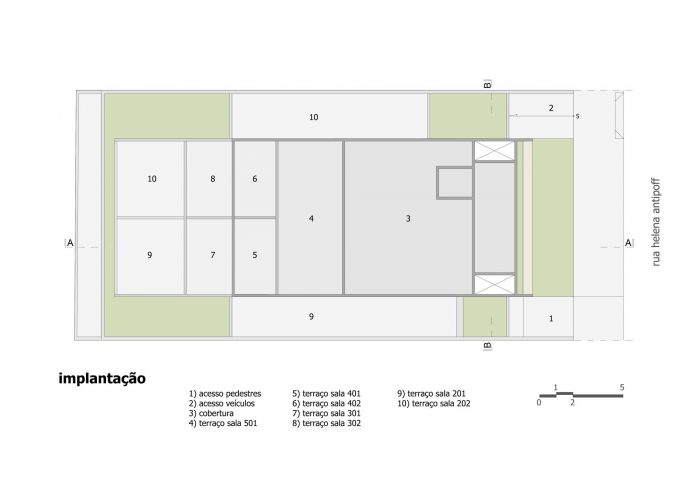 Bento is a building composed by seven commercial rooms and it is in São Bento neighborhood in Belo Horizonte, Minas Gerais. The proposal of the project aimed to offer an original architecture with no vices or repetitions normally seen on the real estate market. The architectural project tried to solve the proposed program by the following basic premises: create a simple structural solution that could contribute for the construction shape, keep some big free spans without structural interference, use materials on their raw conditions, like the concrete and the block bricks, without adding any finishings that demanded constant maintenance, and provide a working area more appealing where people could benefit from the outdoor spaces.