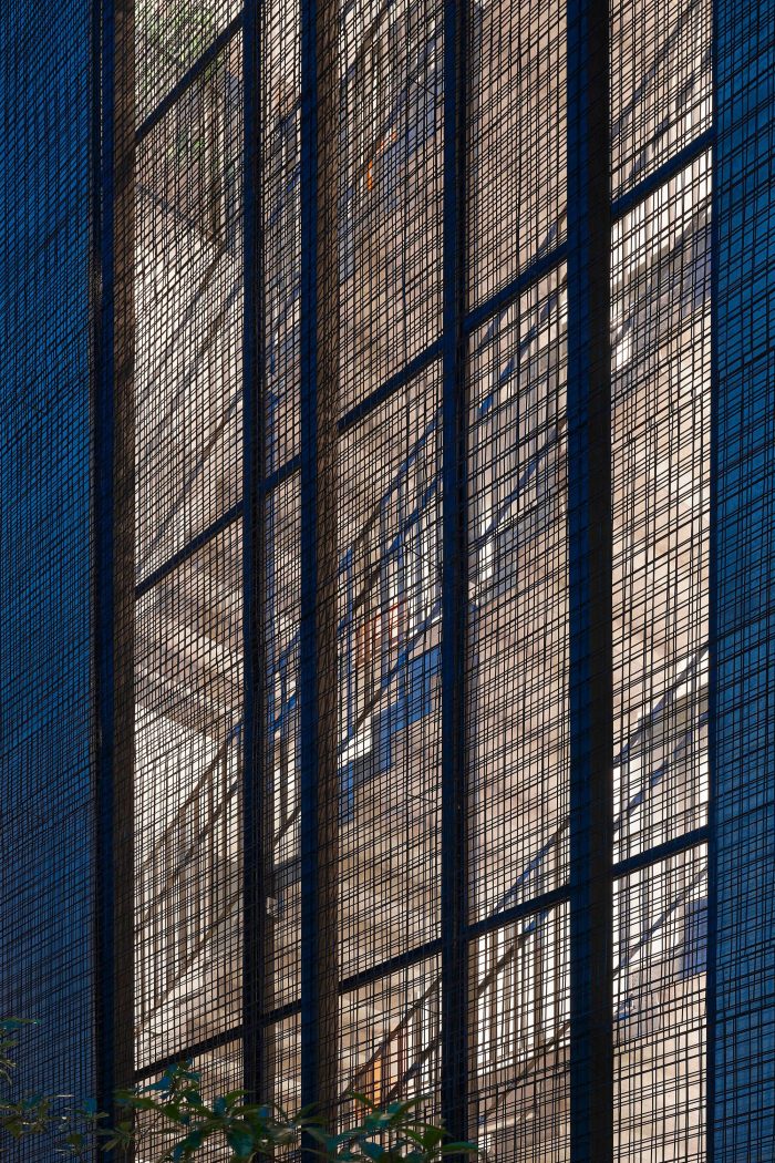 该建筑使用了简单而有力的线条,如两面裸露的混凝土侧墙,有顺序的向外凸出的窗户。主立面有一个由钢筋网保护的大玻璃窗,它根据观察者的视角获得或多或少的力量,并在建筑和街道之间建立起联系。后面的立面形状像台阶,揭示了每个办公室的露台,这不仅带来了质量,而且还提供了Serra do Curral的明确的杰出景观,这是贝洛奥里藏特市的一个重要地标。