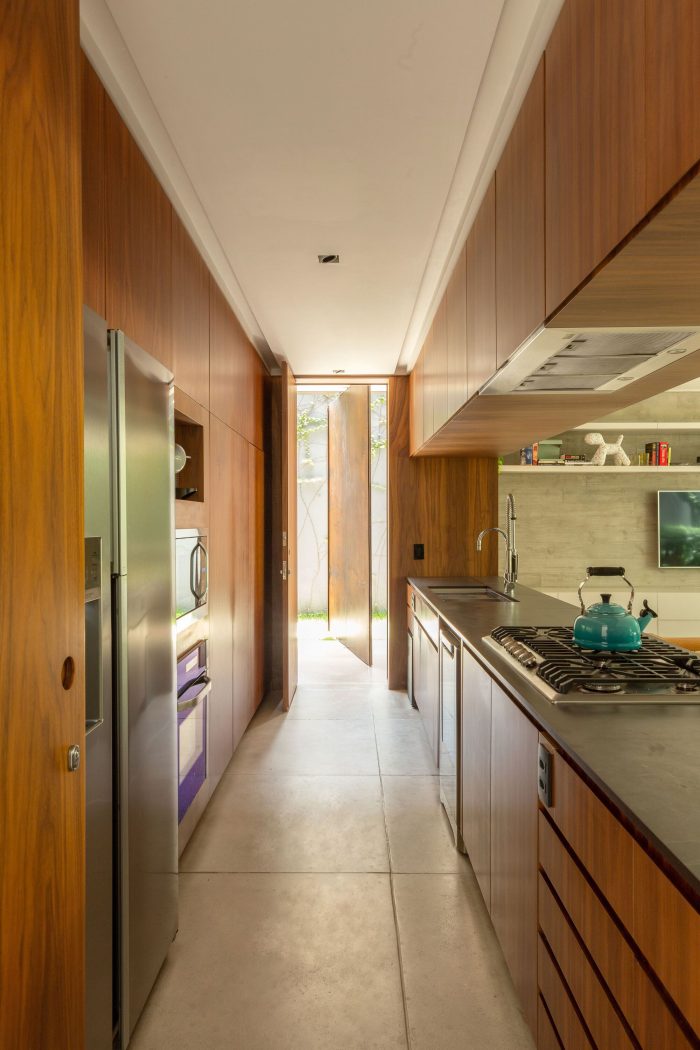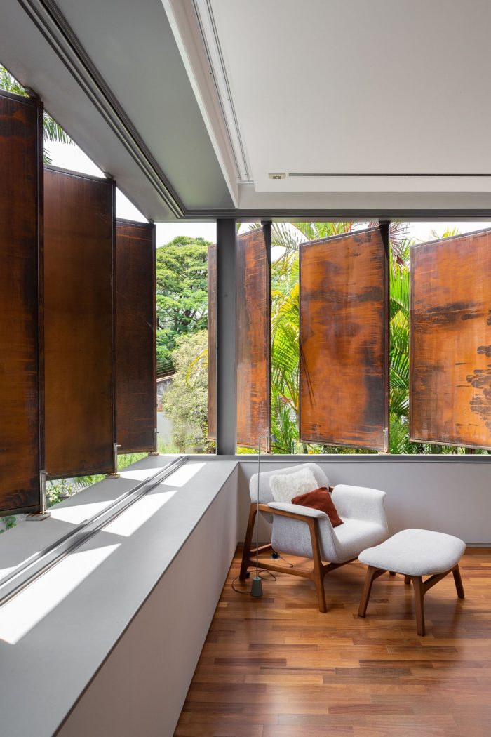 From the public street, the Bento house is shy and discreet. The folded metal sheet of the upper floor and the gate creates a visual barrier so that, after crossing it, the visitor can perceive that the ground floor is integrated with the garden and represents an oasis in the midst of the urban fabric of São Paulo.