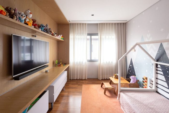 The ground floor, in the opposite way, opens up to the garden in a fluid way. The notion of inside and outside is weakened by the large glass openings, while the furniture establishes a harmonious dialogue between architecture and the Brazilian design of the pieces. We designed some of them, such as the Brasilia coffee table, the Ensamble dining table, the Box side table, and the Move bench.