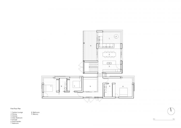 这种有意的安排结合了分层的景观设计,创造了外围的户外空间,在亭子之间提供了阳光和庇护的机会。这样一来,房子和花园就与沿海气候一起跳起了优雅的舞蹈,为居住者和路人带来了动态体验。这种与元素的关系也体现在每个立面的开口节奏上。虽然有严格的顺序和比例,但通过深度的浅浅变化和滑动的木屏风,使这些开口变得活跃起来,给原本正式的外墙带来了轻松的气氛。