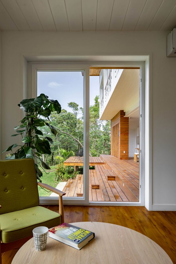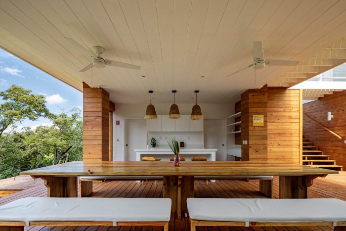 In terms of construction, a wood frame structure is proposed combined with steel elements where the span needs to be wider. As in local constructions, the building is raised one meter above the ground as a topographic adaptation strategy and a method of climate control. In areas with the highest solar incidence, the natural flow of ventilation is guaranteed through elements such as eaves, mullions, and shutters.