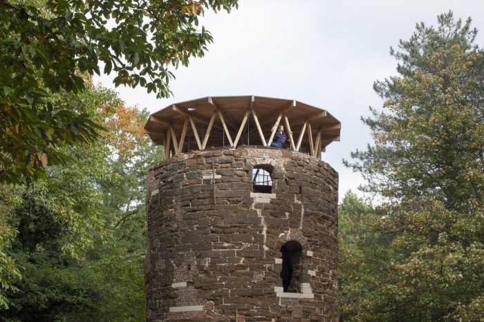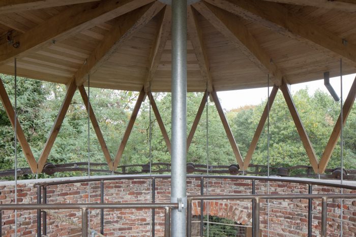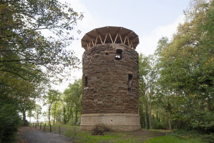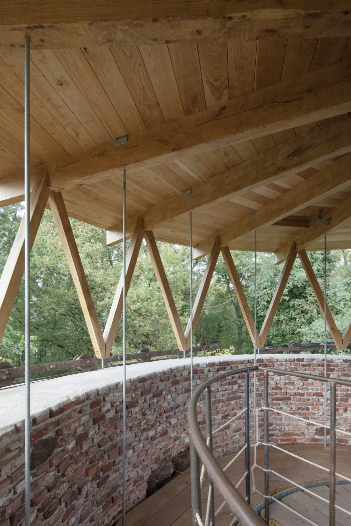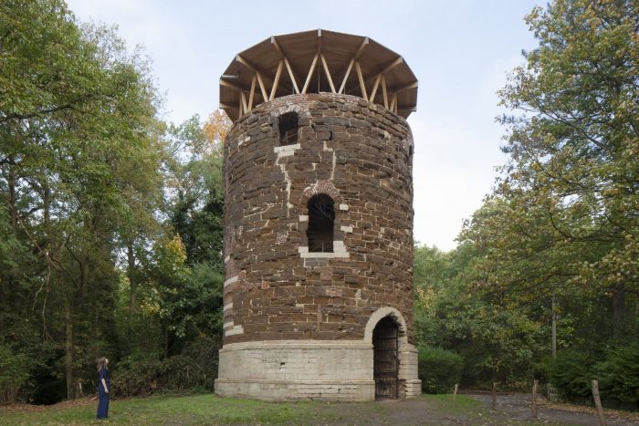 This is an intervention in and restoration of the early 16th-century mill ruins of Betekom. The ruin has been stabilized through a whole series of injections and reinforcements in the stone mass. The ruin is constructed of iron sandstone. This is a local stone that is very expressive in its eroded form.