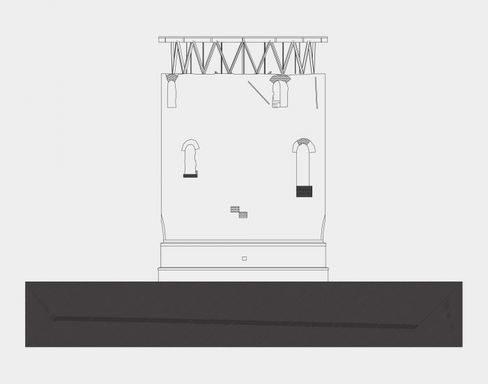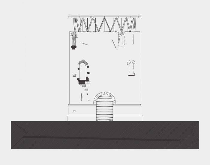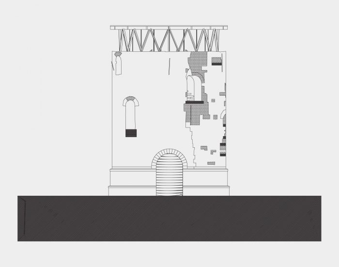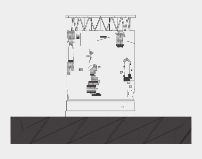 这是对16世纪初贝特科姆磨坊遗址的干预和修复。通过对石块进行一系列的注入和加固,废墟已被稳定下来。废墟是由铁砂岩建造的。这是一种当地的石头,其侵蚀的形式非常具有表现力。