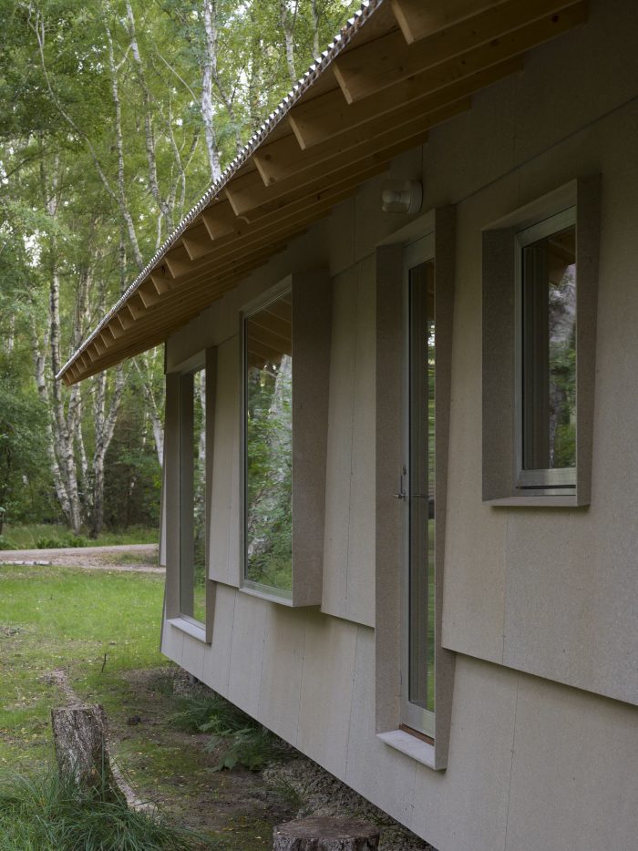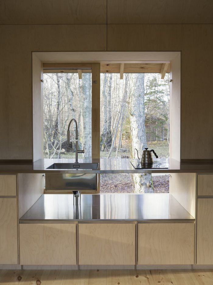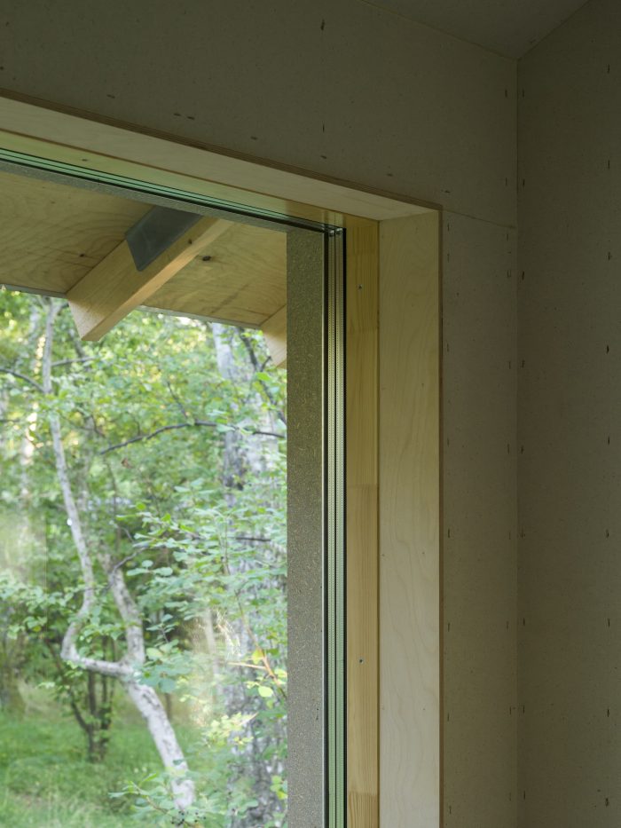 桦木胶合板只在身体和墙壁接触的地方被经济地应用,减少了材料的使用,暴露了建筑中的不同层次。结构元素是可见的,并允许人们认识和跟踪房子的发展,创造一种时间上的轻盈体验。