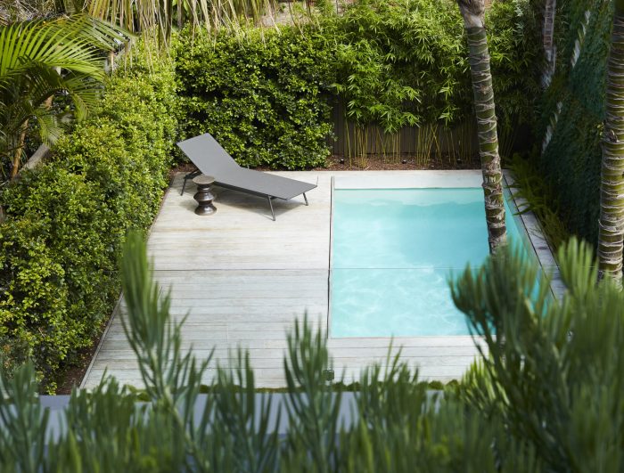 Our design approach centred on improving the connection of the house to the exterior. This was achieved through careful positioning of windows and skylights, and by reorienting the house to engage with its new rear garden setting and pool. A large steel canopy frames views of the garden from the interior, whilst also providing weather protection and supporting a planted roof adjacent to the main bedroom above.