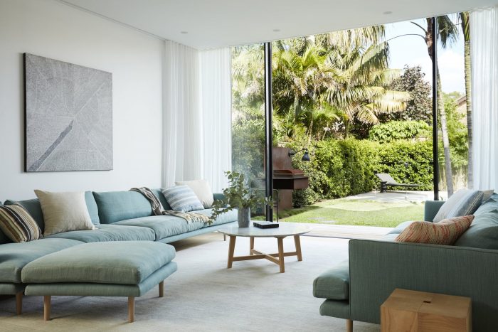 The landscape design added a softness to the scheme which contrasts the crisp black outline of the built from. Likewise the interior design brought a fresh colour palette of subtle hues, complementing with the dark metal framing of the exterior.