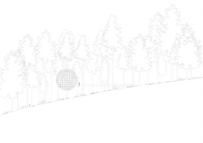 By designing a treetop hotel room with a façade of bird nests, the aim of Biosphere is to decrease the downward spiral of the bird population in the Swedish woods and instead strengthen the biosphere and natural habitat.