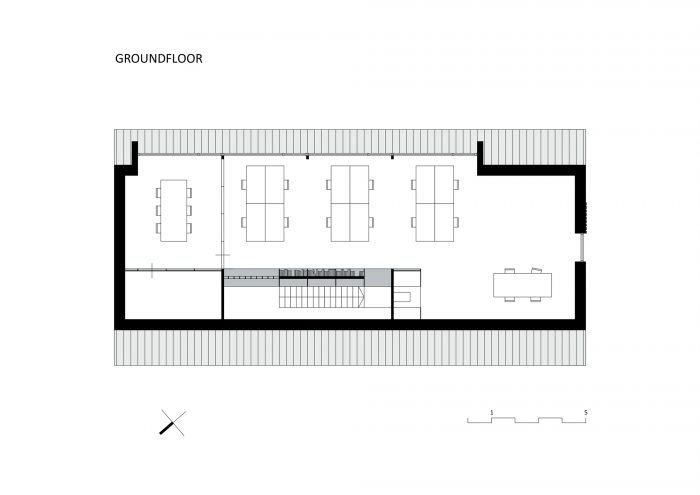 黑谷仓的雄心很明确;一个适度但高质量的建筑,将所有的注意力吸引到它背后的景观。它在街道一侧有一个封闭的特点,但有一个令人叹为观止的河边和背后的景观。绿色工艺流淌在血液中,这种激情也被欣然分享。因此,新办公室不仅为人们提供了空间,也为动植物提供了空间。例如,外墙包括许多巢箱,在正式完工之前,飞翔的居民已经在里面居住了。