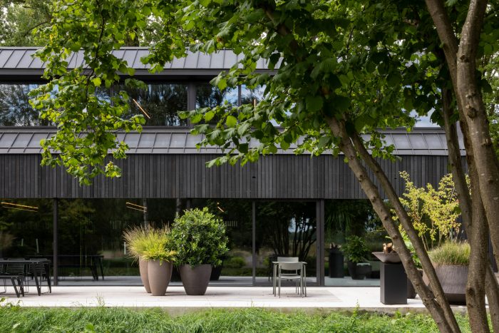 The ambition for the Black Barn is clear; a modest but high-quality construction that draws all attention to the landscape behind it. It has a closed character on the street side but has a breathtaking view of the side of the river and the landscape behind it. The green craft is in the blood and that passion is gladly shared. The new office, therefore, offers space not only for people but also for flora and fauna. For example, the facade includes numerous nest boxes in which the flying inhabitants had already taken up residence before the official completion.