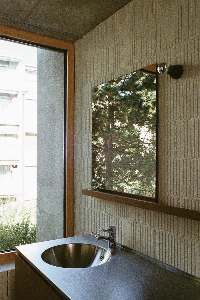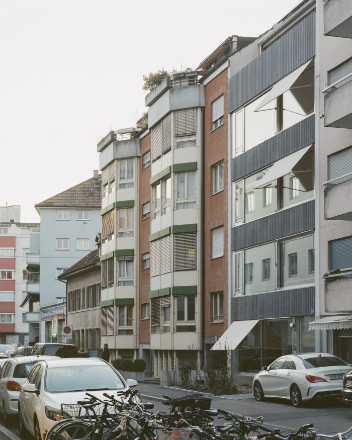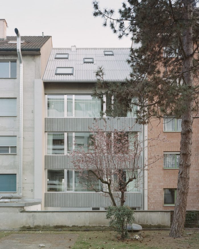 The location and minimal dimensions of the given plot in the middle of dense Kleinbasel, as well as the related (building law) framework conditions, noticeably shape the residential building. In accordance with the character of the multi-layered neighborhood, four small apartments and a ground-floor studio are realized: