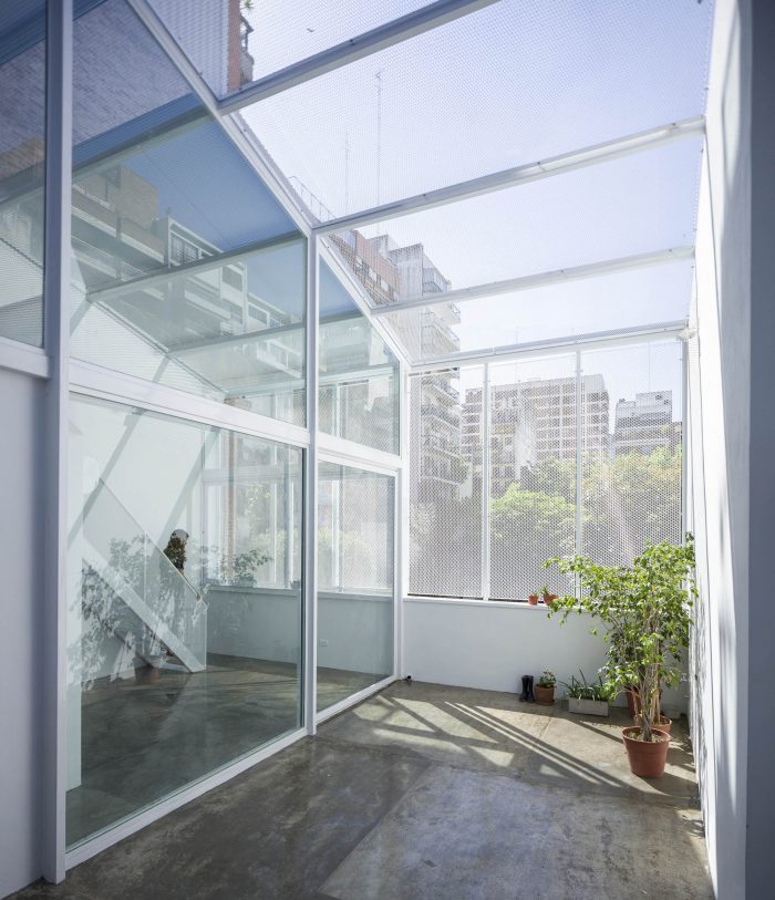 An accumulation of existing flat roofs at different heights becomes the floor for the new construction, distributing a series of indoor and outdoor areas that are connected together. An envelope conformed by opaque, transparent and permeable elements covers the old house in all its extension, opening new possibilities of relationship with the environment.