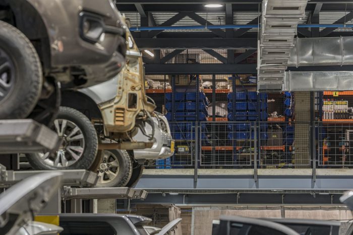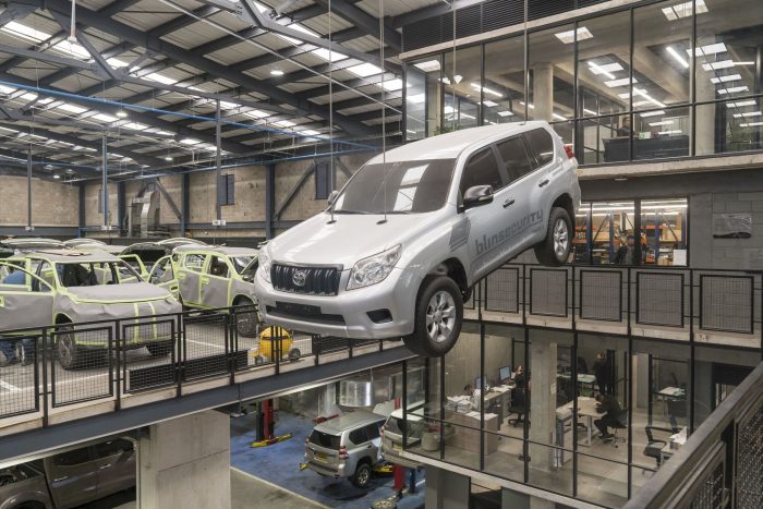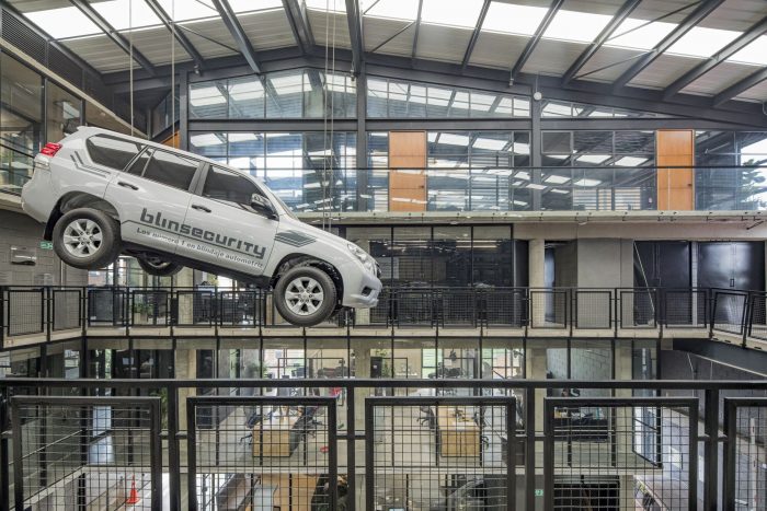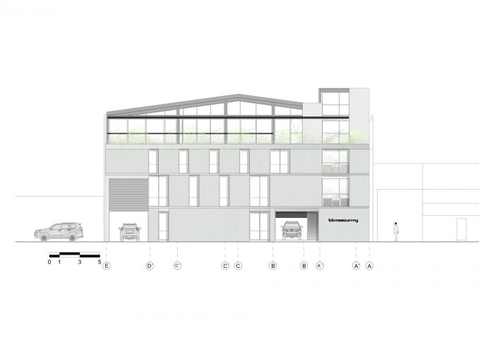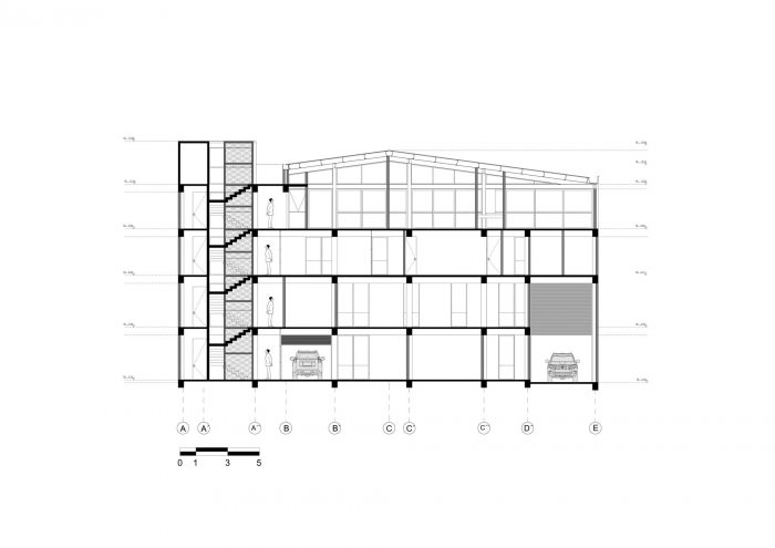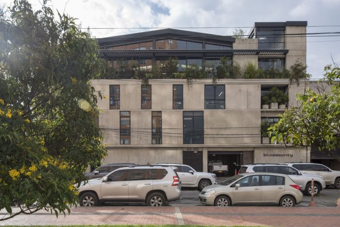The project arises from the need to expand and organise the production line for automotive armor, a task of Blinsecurity of Colombia. Located in the town of Barrios Unidos, in the San Fernando neighbourhood in the west of the city of Bogotá, in a mixed-use area where the development of small and medium-sized companies with tendencies toward the automotive sector predominates.