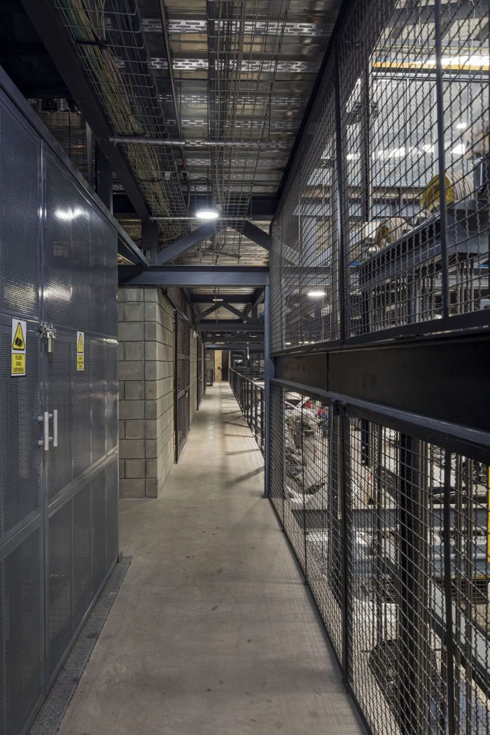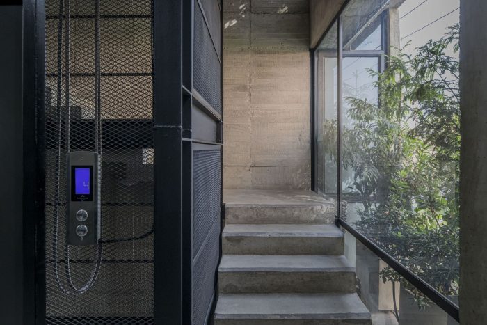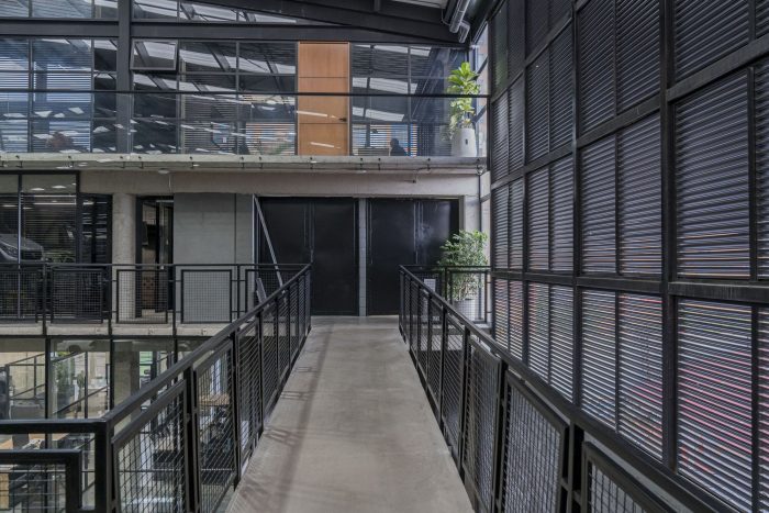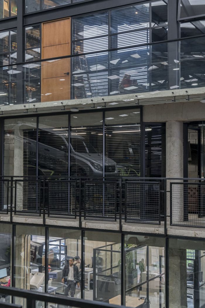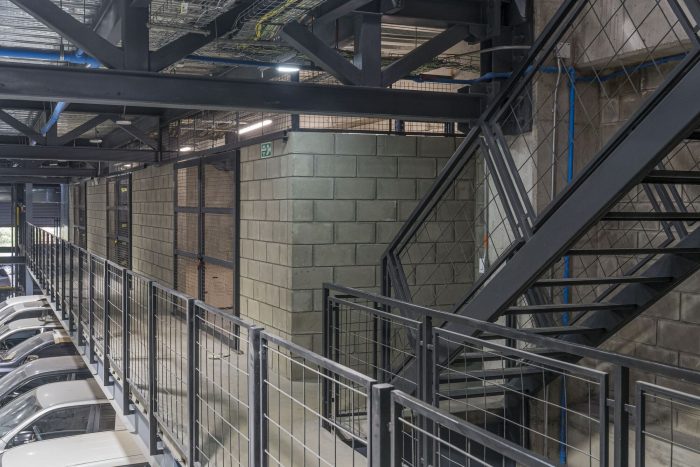 In this urban context, the proposed building does not seek prominence and aims to camouflage itself in the environment, while hiding the activities that take place inside. However, a game of voids generates an interior-exterior connection in specific areas of administrative workstations and focuses on tangible elements of the landscape such as the hills of Bogotá. This sums up the idea of a large concrete mass perforated by a series of voids. The strategy that was used to meet the challenge of making the most of the size of the property and the great need for space in the program was to propose a superimposition of spaces (a warehouse on top of another warehouse), the shielding plant on top of the maintenance workshop, generating two free floors separated from the administrative building by a central void. This courtyard not only acts as a transition between the two volumes but also allows the activities that take place in it to be seen from any of the four levels of the building. In addition, it facilitates the operation of the plant due to its quality as a collector of ventilation and natural light, allowing these two factors to permeate the workspaces.