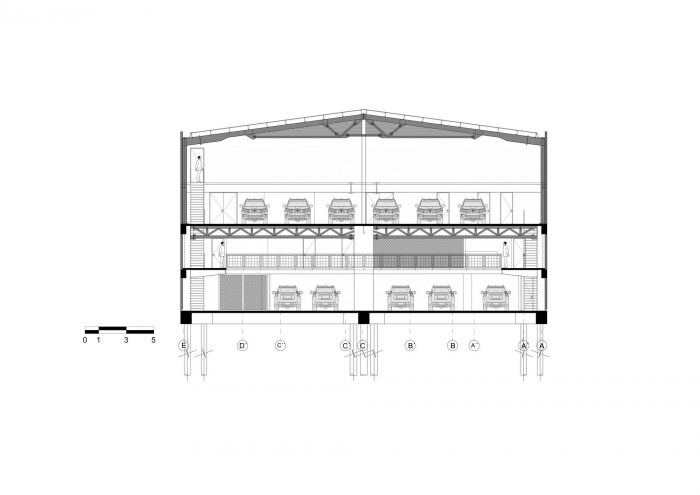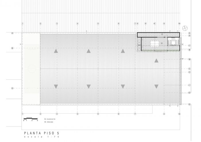 The main idea of the project was based on building an atypical space (seen from the conventional perspective of the factory), where the notion of industrial functionality and productive efficiency was not an impediment to the exploration of spatialities that would foster a pleasant work environment and giving the company a sense of ownership through a building. Regardless of the functionality required in the building to guarantee the rigorous production process of the armor, the aim was to provide spaces that would create spatial anomalies and provide the building with certain flexibility. A multipurpose space for sports activities and meetings between users and a dining terrace, directly related to the outside and in visual communication with the landscape of the hills of Bogotá, became areas that, through space, break with the monotony of work and create a closer link between the user and the building.