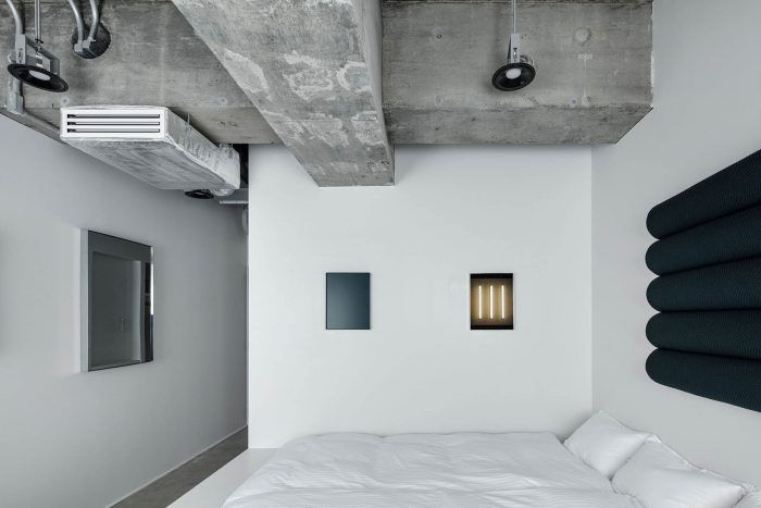 Since it was an art project, each room was assigned to an artist, and we were the only ones who normally work in architecture or interior design. Therefore, instead of adding art to the function of the hotel, we decided to enter the project as designers by designing rooms that behave "like works of art" while maintaining the necessary facilities and functions of the hotel.