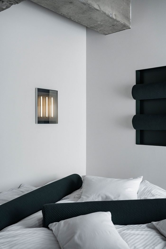 由于这是一个艺术项目,每个房间都被分配给一个艺术家,而我们是唯一通常以建筑或室内设计为生的人。 因此,我们决定不在酒店的功能中加入艺术,而是作为设计师参与其中,在保持酒店必要的设施和功能的情况下,设计一个功能表现 "像艺术品 "的房间。