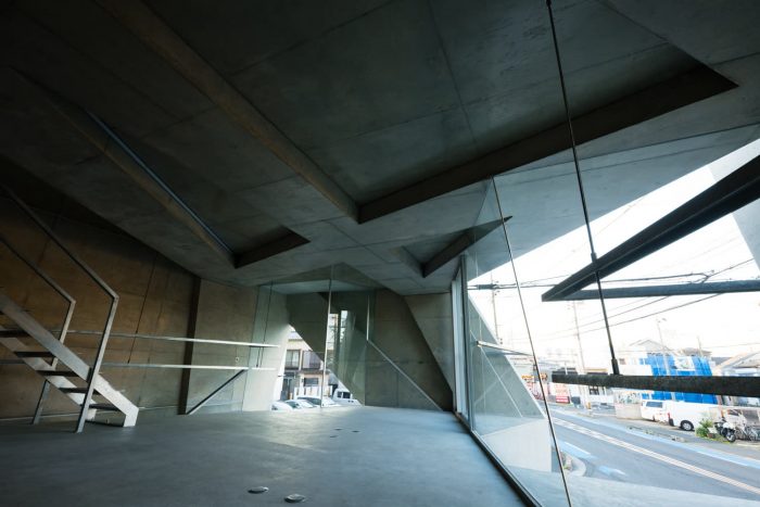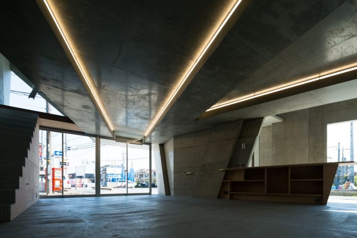 The clients’ company is a moderate size retailer handling a vast range of nuts and bolts together with other architectural materials. They requested the new headquarters to have the function of a warehouse, showroom and an office; and to be an interesting, eye-catching piece of architecture. However, the budget was extremely limited, at about 60% (about 240-250K yen per square meter) of an average concrete building. Through analyzing the clients’ requests thoroughly and with the minimum possible cost and the image of the final structure in mind, I began studying the possibilities together with my fellow structural engineer and contractor.