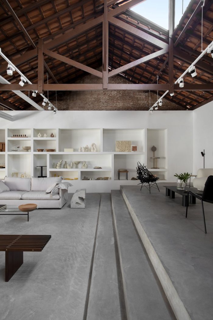 The starting point of the project was the rehabilitation of an old shed in Vila Madalena seeking to maintain its language and structure, contrasting it with specific and precise interventions. The project proposes a neutral architecture and interior that will function as a background to receive a variety of products with different colors, functions, and dimensions.